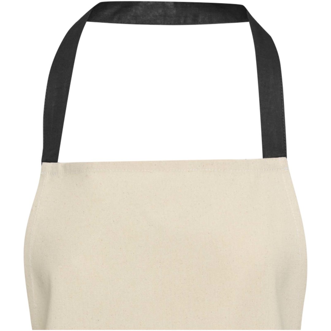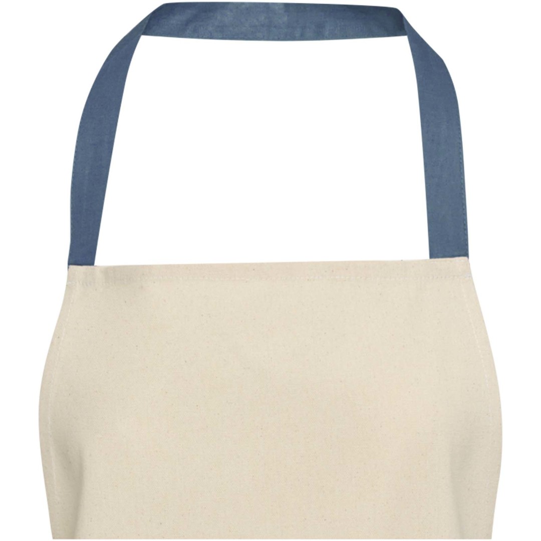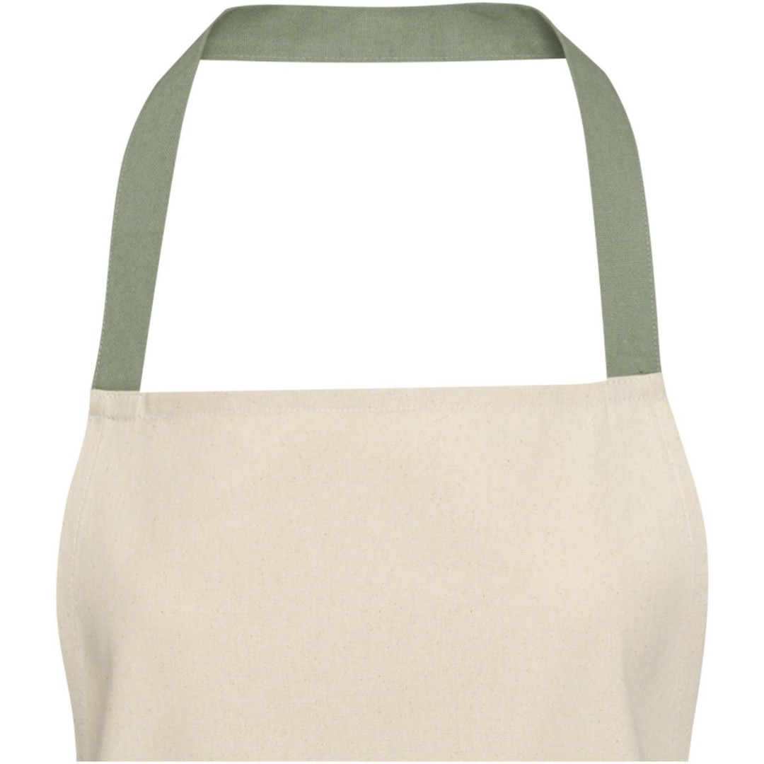 Zástěra Nia je vyrobena ze 100% recyklované bavlny s certifikací GRS s gramáží 200 g/m². Tato zástěra v přírodní bavlněné barvě s krčním úvazem v kontrastní barvě ochrání vaše oblečení při vaření. Zástěra Nia se dvěma kapsami vedle sebe o celkové velikosti 45 × 20 cm a 1 metr dlouhým zádovým úvazem zajišťuje praktičnost i styl v kuchyni.