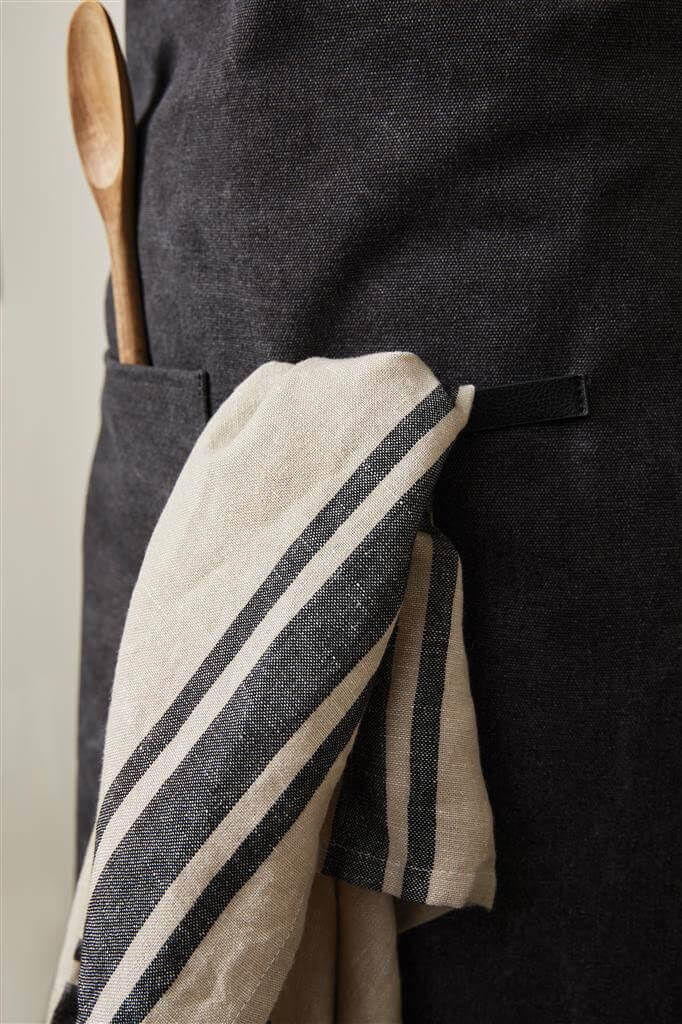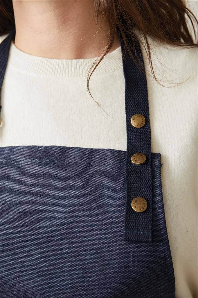 Zástěra vyrobená ze 40 % z recyklovaného polyesteru a ze 60 % z recyklované bavlny. Tato stylová zástěra je praktickým kuchyňským doplňkem v krásném designu – ani při vaření večeře nemusíte slevovat ze svého stylu! Zástěra má přední kapsu a poutko na zavěšení nářadí nebo utěrek, takže budete mít při vaření vše po ruce. Má měkký a nastavitelný krční popruh pro větší pohodlí.