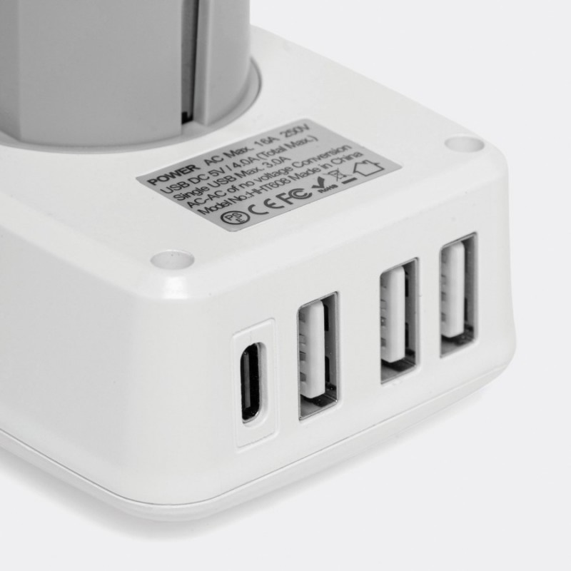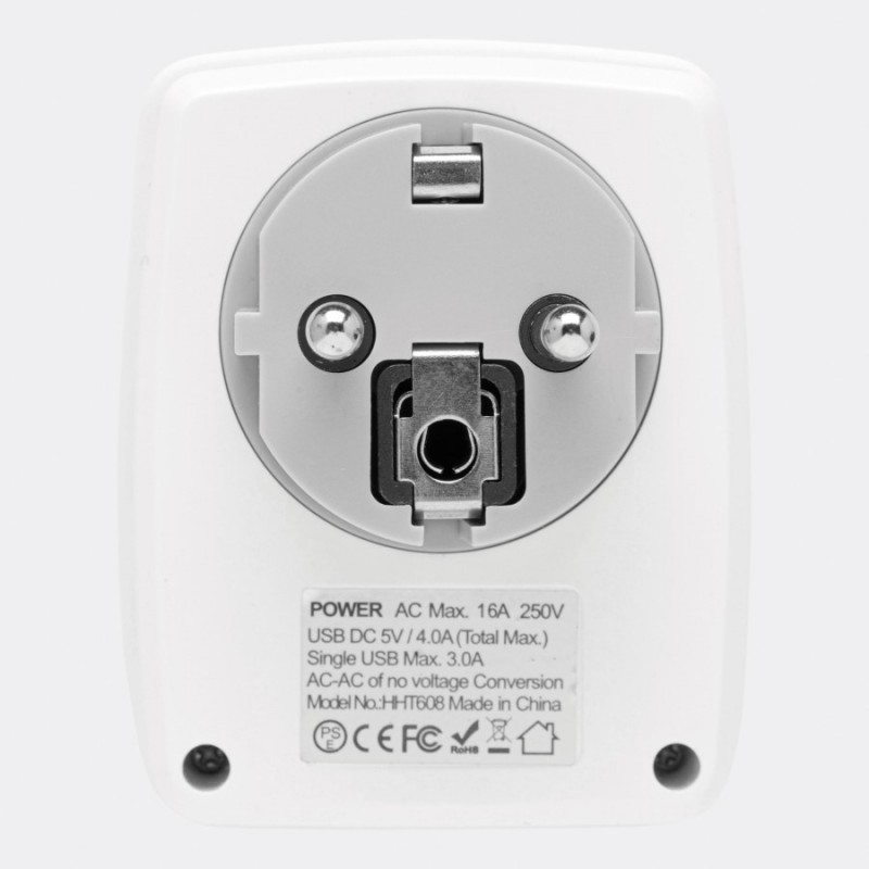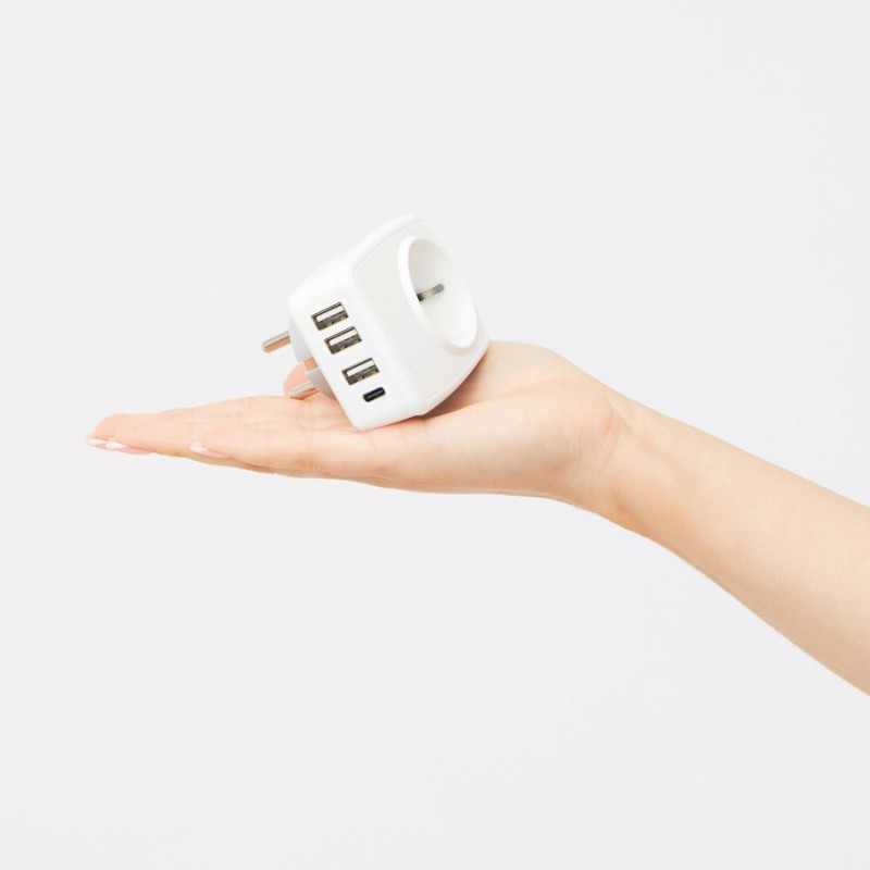 Zásuvkový napájecí adaptér USB ENDLESS POWER PRO : 1 uzemněná zásuvka Schuko s dětskou pojistkou, 3 porty USB-A, 1 port USB-C, výstupní výkon USB: max. 3 A, výstupní výkon zásuvky Schuko max. 4 000 W, modrá stavová LED dioda, nevhodné pro Velkou Británii.