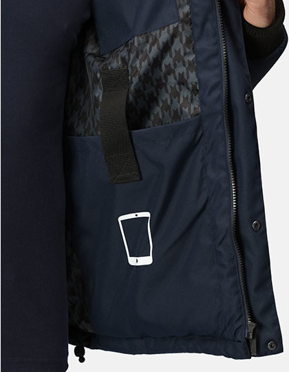 Odolný materiál Polyester 300D s povrchovou úpravou DWR a zateplením ze 100% recyklovaného materiálu s technologií Warmloft | Vnitřní podšívka z polyesteru s pepitovým potiskem a žebrovaný vnitřní límec | Několik kapes, včetně 12palcové kapsy na notebook/tablet | Nastavitelný lem a skrytý zip pro přístup k výšivce.
