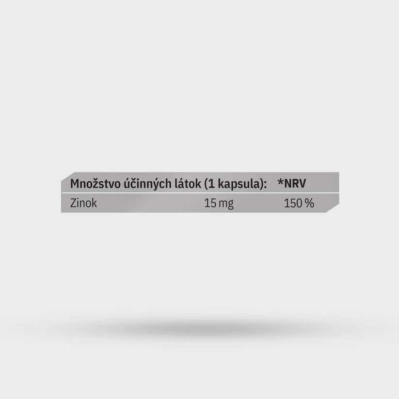 Komplexní doplněk stravy se zinkem v chelátové formě bisglycinátu, který zaručuje vysokou vstřebatelnost. Zinek přispívá ke správné funkci imunitního systému, zdravé pokožce, vlasům a nehtům, jakož ik normální syntéze DNA a plodnosti. Složení: inulin (vláknina z kořene čekanky), veganská kapsle (HPMC), bisglycinát zinečnatý.