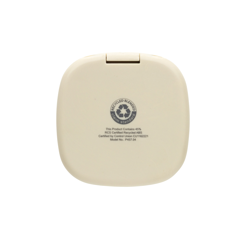 Reflecta je kompaktní a stylové kapesní zrcadlo ideální pro každodenní líčení i rychlé úpravy na cestách. Obsahuje dvě zrcadla – jedno běžné a jedno zvětšovací – pro přesné a detailní nanášení make-upu kdekoli. Nevyžaduje baterie ani nabíjení, díky čemuž je vždy připraveno k použití. Vyrobeno z recyklovaných materiálů s certifikací RCS (Recycled Claim Standard), která zaručuje ověřený původ recyklovaného obsahu v celém dodavatelském řetězci. Celkový podíl recyklovaného materiálu tvoří 46% z hmotnosti výrobku. Neobsahuje PVC. Elegantní, praktické a ekologické řešení pro vaši beauty rutinu.